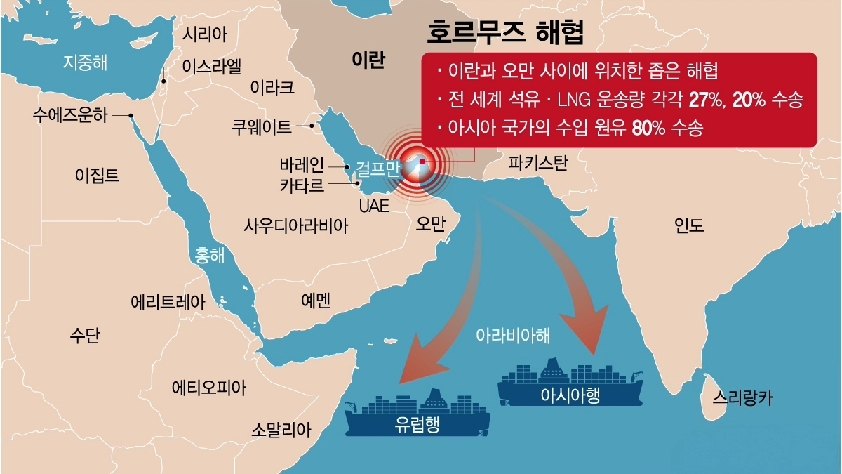 가스주 폭등의 직접적인 도화선은 세계 최대 해상 수송로인 호르무즈 해협의 봉쇄 위기다.
