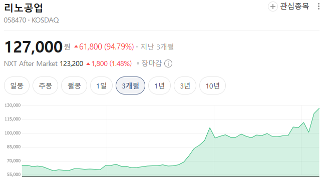 AI 반도체 열풍과 함께 테스트 수요가 폭증하는 구조적 성장기에 진입한 만큼, 리노공업의 이번 24% 급등은 단순한 기술적 반등이 아닌 본격적인 주가 레벨업의 시작일 수 있다는 분석이 지배적이다.